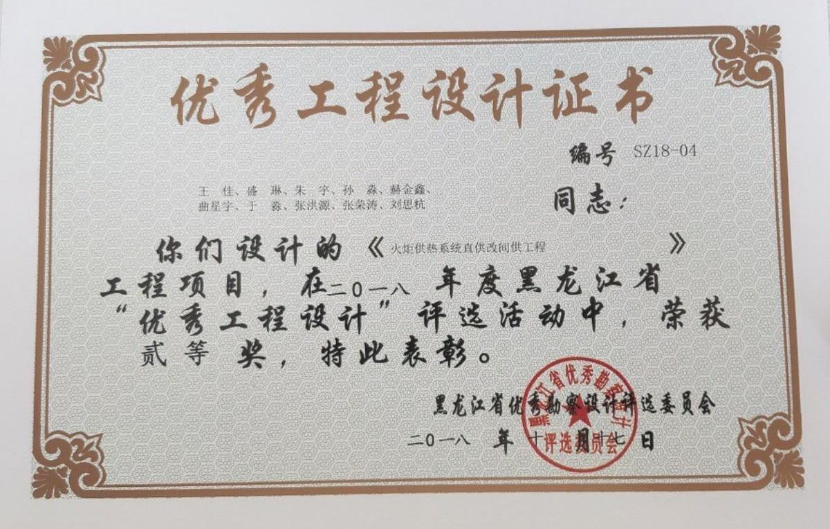 火炬供热系统直供改间供工程(2018年度黑龙江省优秀工程设计二等奖)